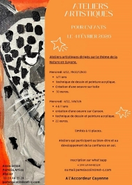 l'Association Paméla Artiss Atelier propose, le 4 février, des ateliers artistiques pour enfants sur le thème de la nature en Guyane.