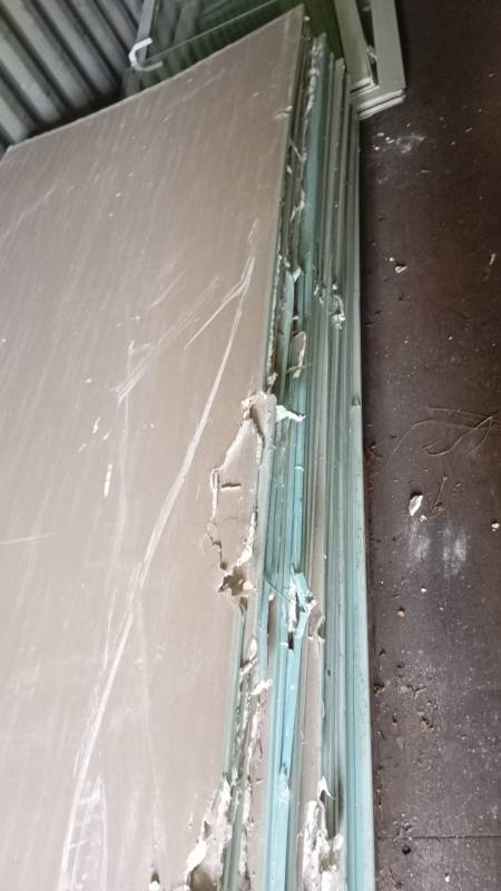 Je vends des plaques de placoplâtre hydrofuge 1,20x2,50 abîmé, bon état général seulement des éraflures sur les côtés, fin chantier,...