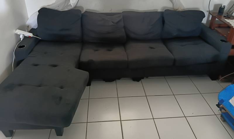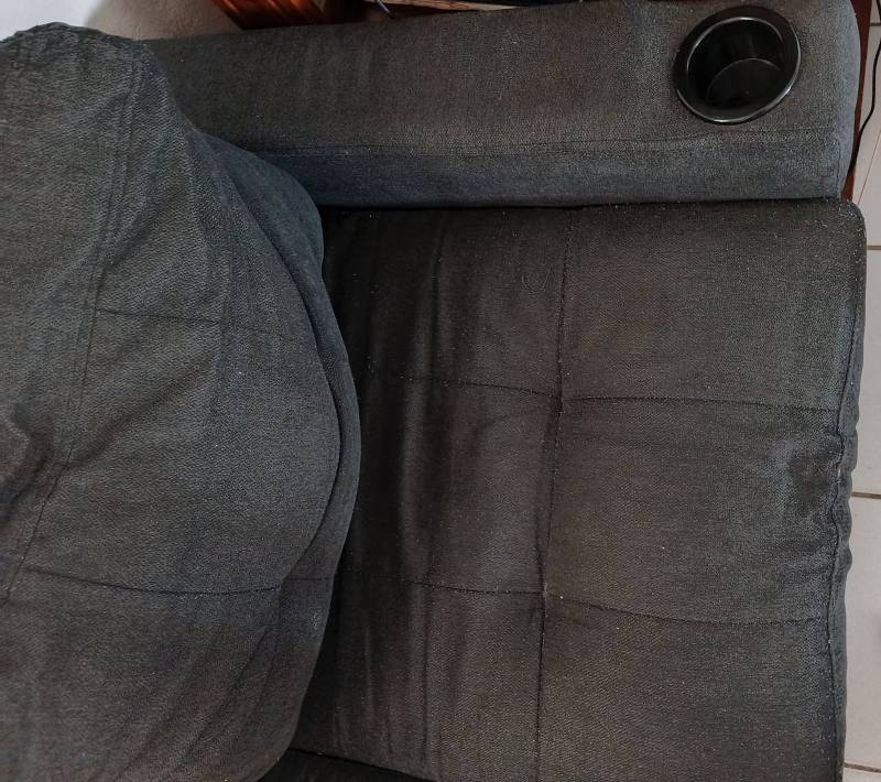 Bonjour je vends un canapée noir 4 places déhoussable. Les pieds sont intacte. Tissus du bas tombant mais canapé pas cassé. Repose verre de...
