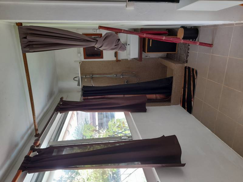 Loue un grand studio semi-meublé avec petite terrasse et jardin, parking privé et sécurisé, accès piscine, toutes charges comprises,...