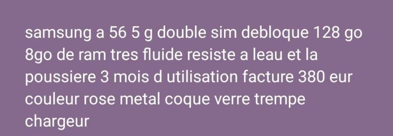 Bonjour je vend un Samsung a 33 a 50eur avec chargeur