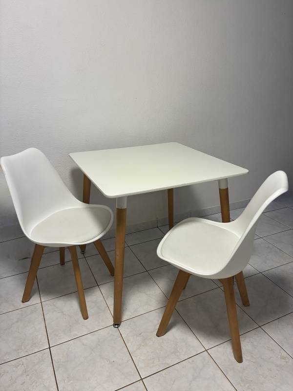 Je vends une table blanche carré et ses 2 chaises au prix de 150 €.