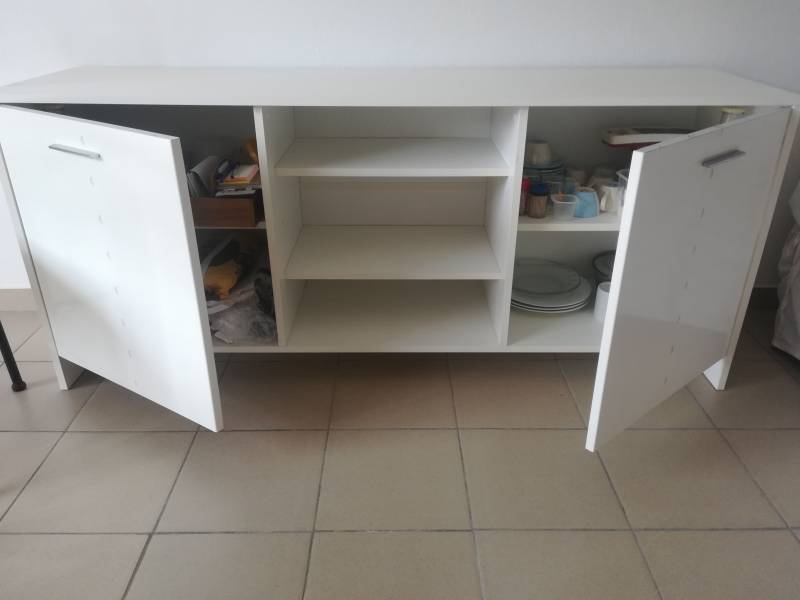 Vends un meuble de rangement de type enfilade 2 portes et 3 étagères centrales. Dimensions longueur 169 cm, largeur 44 cm et hauteur 73 cm....
