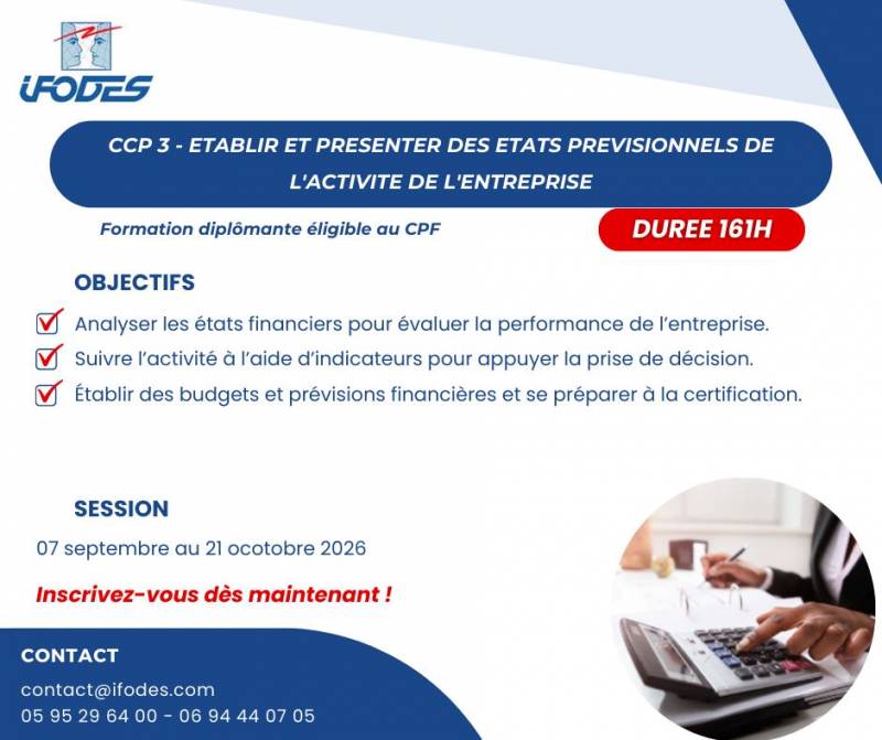 CCP 3 - ETABLIR ET PRESENTER DES ETATS PREVISIONNELS DE L'ACTIVITE DE L'ENTREPRISE / Cayenne