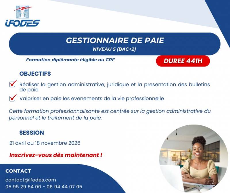 FORMATION DIPLOMANTE GESTIONNAIRE DE PAIE / Cayenne