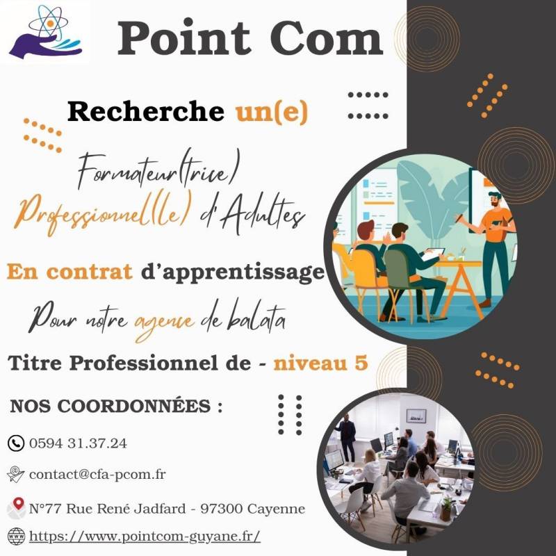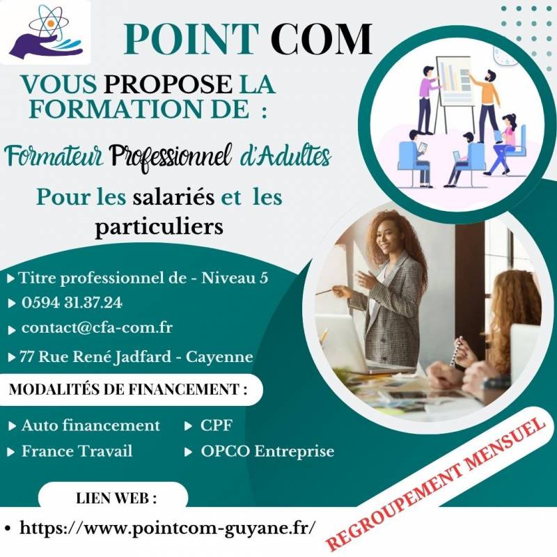Point Com a le plaisir de vous informer que nous proposons la formation "Formateur Professionnel d’Adultes" , accessible aux salariés comme aux...