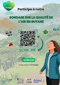 « Connaissez-vous réellement l'air que vous respirez ? » L’ARS, Atmo Guyane et leurs partenaires lancent une grande enquête dans le cadre du Plan régional santé environnement (PRSE) : « Que sais-je sur la qualité de l'air ? ». L'objectif est de mieux comprendre les besoins et les connaissances de la population, afin de proposer des actions sur le littoral. Le questionnaire s’adresse à tous, habitants du littoral, des communes de l’intérieur et vivant le long des fleuves.