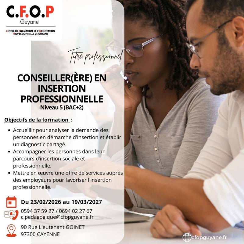 Début de la formation : du 23/02/2026 au 19/03/2027 à Cayenne.